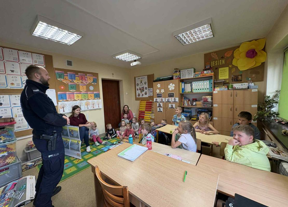 W Szkole Podstawowej w Rzepiskach odbyło się spotkanie uczniów klas 0–5 z policjantem, poświęcone tematyce bezpieczeństwa. Funkcjonariusz opowiadał dzieciom, jak należy zachowywać się na drodze, w domu oraz w kontaktach z obcymi osobami. Przypomniał też zasady bezpiecznego korzystania z Internetu i telefonów komórkowych. Podczas spotkania uczniowie zadawali wiele pytań i chętnie dzielili się swoimi doświadczeniami. Policjant pokazał również elementy wyposażenia służbowego i wyjaśnił, na czym polega jego codzienna praca. Dzieci dowiedziały się, jak ważne jest noszenie odblasków, zapinanie pasów w samochodzie i ostrożność podczas zabawy na świeżym powietrzu. Na zakończenie spotkania uczniowie podziękowali policjantowi za ciekawą lekcję i obiecali, że będą stosować się do zasad bezpieczeństwa na co dzień.